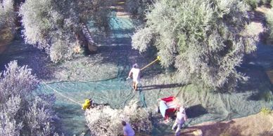 Unsere Olivenernte erfolgt traditionell von Hand mithilfe von Rechen, Kämmen oder Stangen.